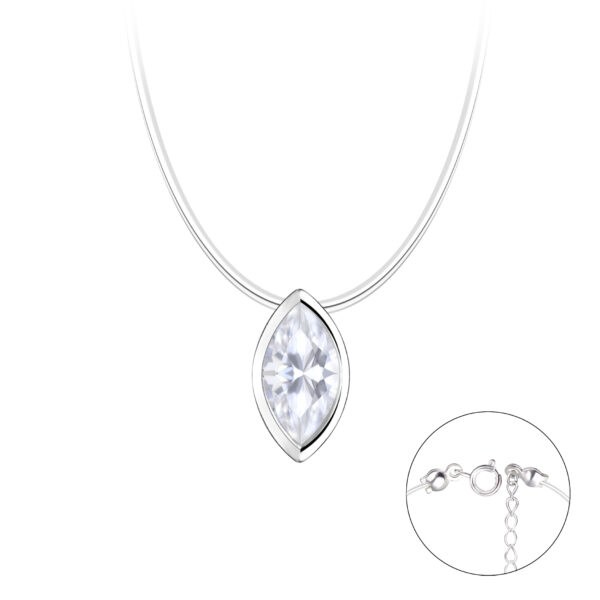 4x8mm Marquise Cubic Zirconia Silver Invisible Necklace