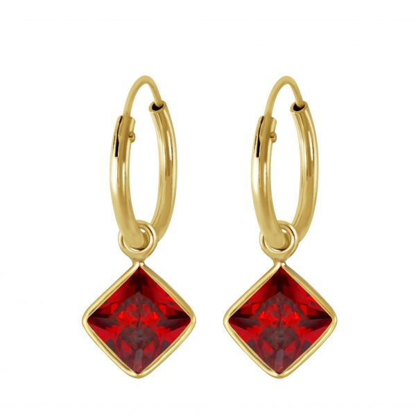 6mm Square Cubic Zirconia Silver Charm Hoop Earrings