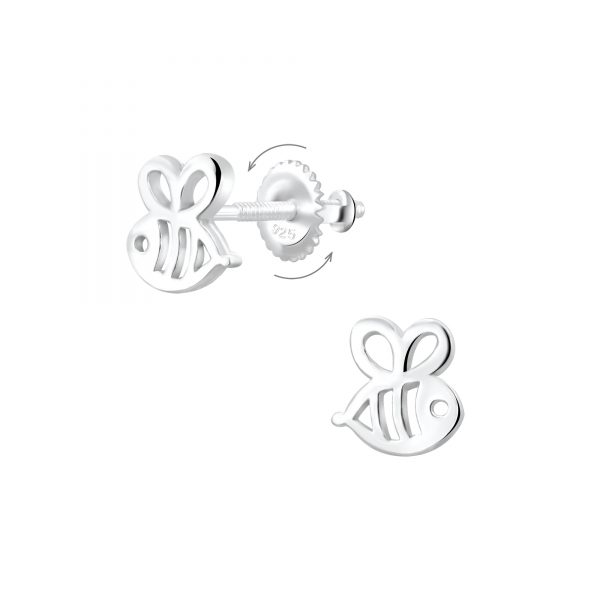 Silver Bee Screw Back Earrings