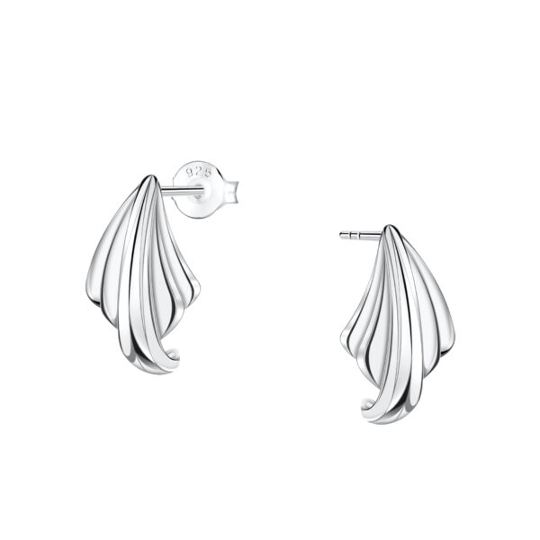 Silver Patterned Half Hoop Stud Earrings