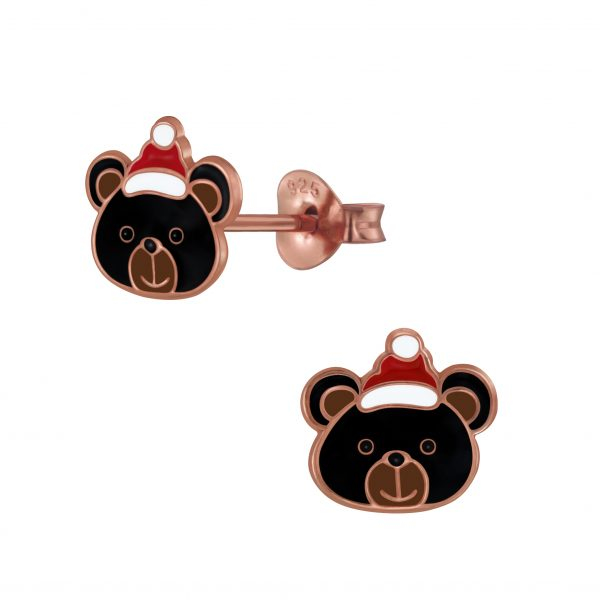 Silver Christmas Bear Stud Earrings
