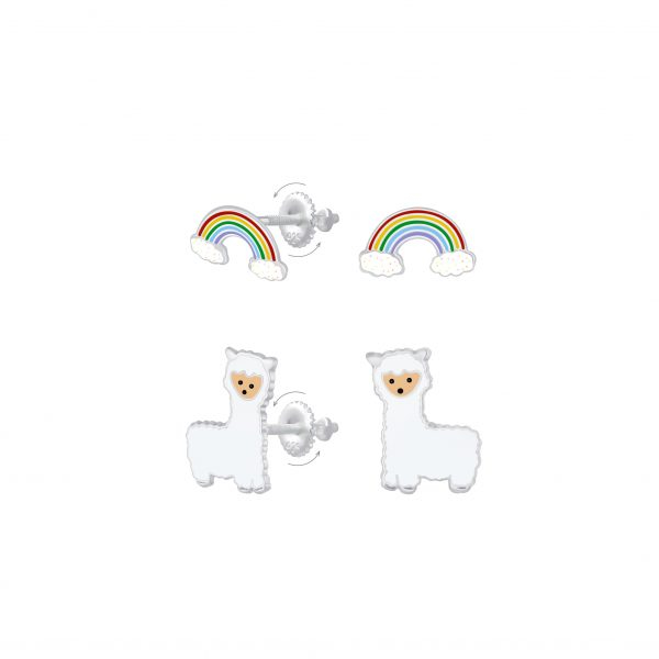 Silver Rainbow and Alpaca Screw Back Earrings Set