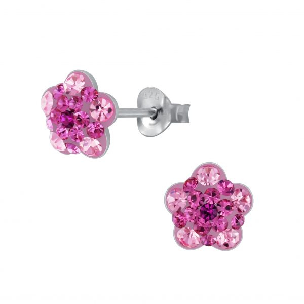 Silver Flower Crystal Stud Earrings