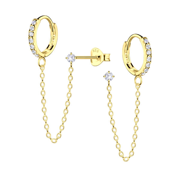 12mm Silver Huggie with 2mm Round Cubic Zirconia Stud Earrings