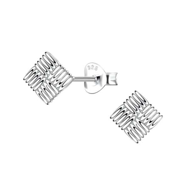 Silver Patterned Square Stud Earrings