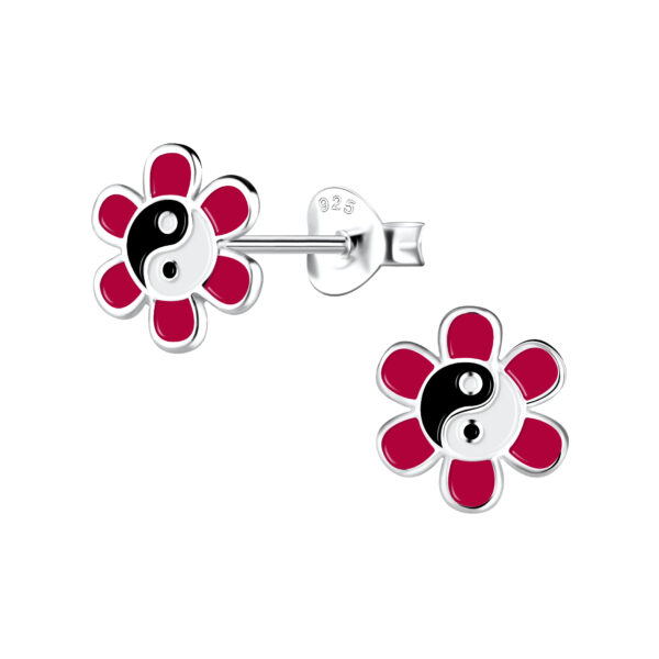 Silver Yin Yang Flower Stud Earrings