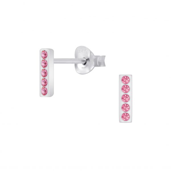 Silver Bar Crystal Stud Earrings
