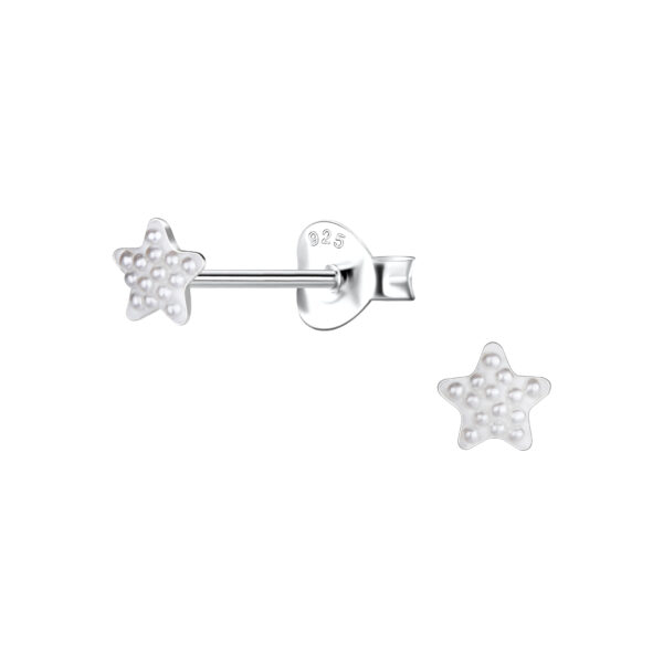 Silver Star Stud Earrings with Pearl