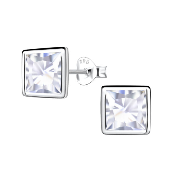 8mm Square Cubic Zirconia Silver Stud Earrings
