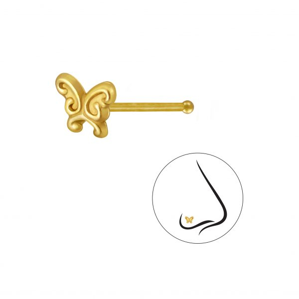 Silver Butterfly Nose Stud With Ball