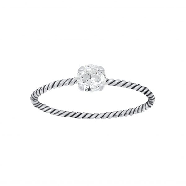 4mm Round Cubic Zirconia Silver Twisted Band Solitaire Ring