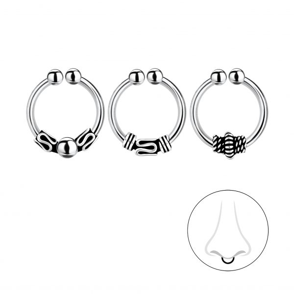 10mm Silver Bali Septum Clip Set - Pack of 3