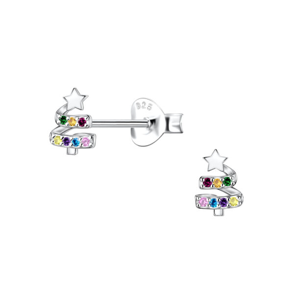 Silver Christmas Tree Stud Earrings
