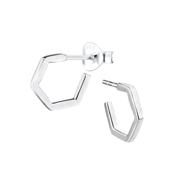 Silver Half Hoop Stud Earrings