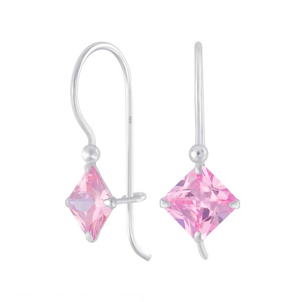 6mm Square Cubic Zirconia Silver Earrings