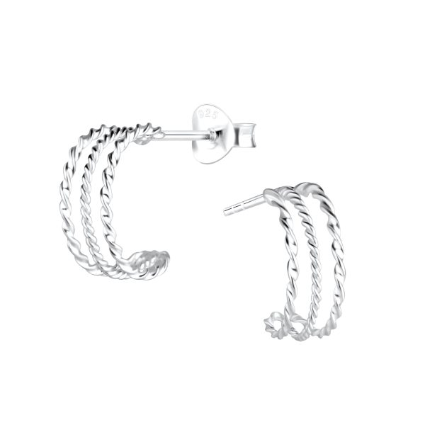 Silver Twisted Half Hoop Stud Earrings