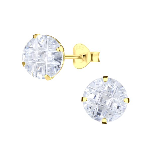 8mm Round Checkerboard Cubic Zirconia Silver Stud Earrings