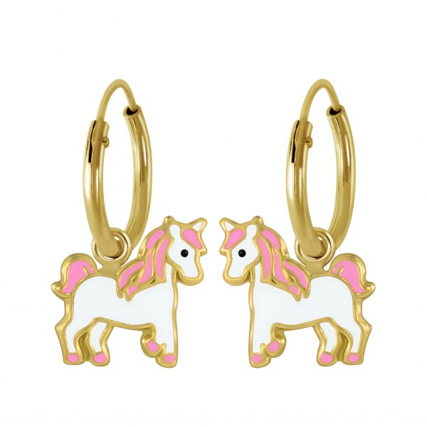 Silver Unicorn Charm Hoop Earrings