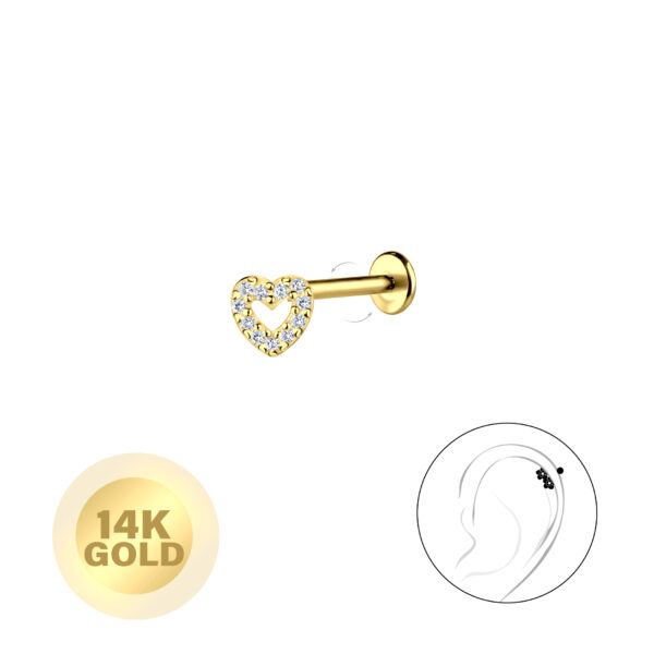 14K Solid Gold - Heart Labret with 3mm Disc