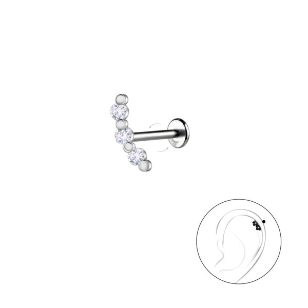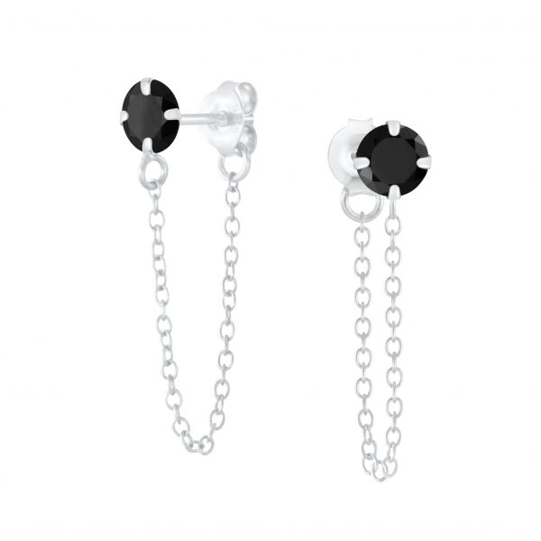 4mm Round Cubic Zirconia Silver Stud Earrings with Chain