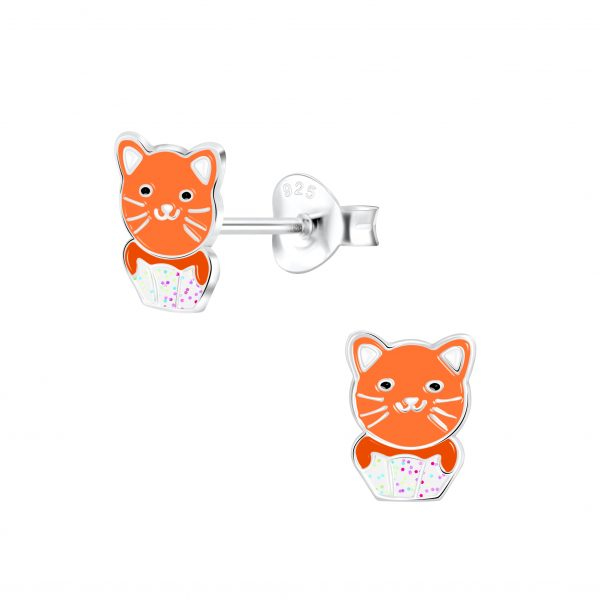 Silver Cat Stud Earrings