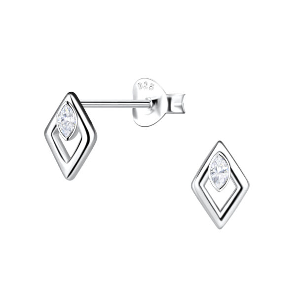 Silver Diamond Shaped Stud Earrings