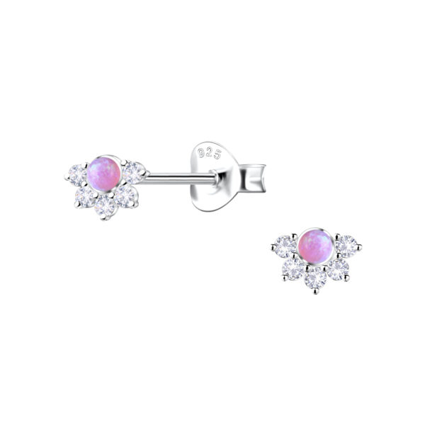 Silver Geometric Opal Stud Earrings