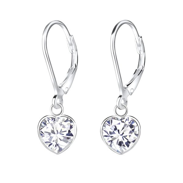7mm Heart Cubic Zirconia Silver Lever Back Earrings