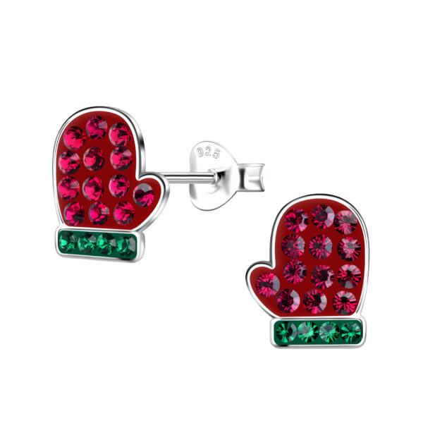 Silver Christmas Glove Stud Earrings
