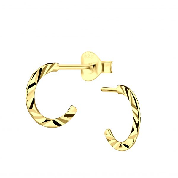 Silver Half Hoop Stud Earrings with Diamond Cut