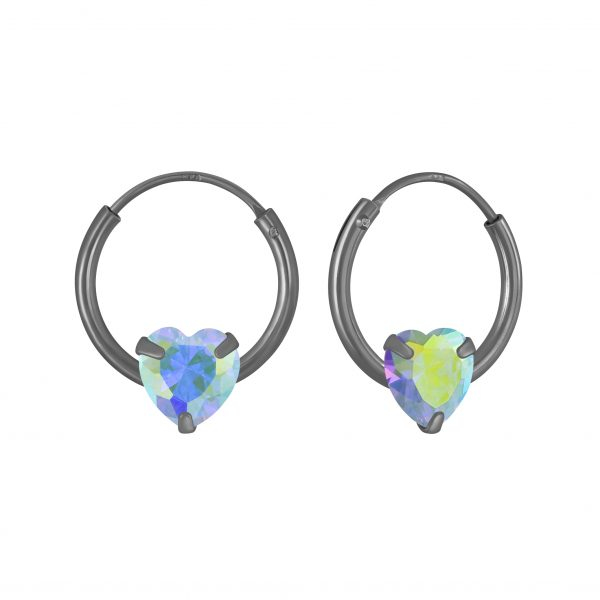 4mm Heart Cubic Zirconia Silver Hoop Earrings