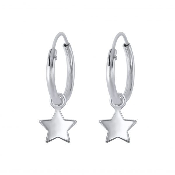 Silver Star Charm Hoop Earrings