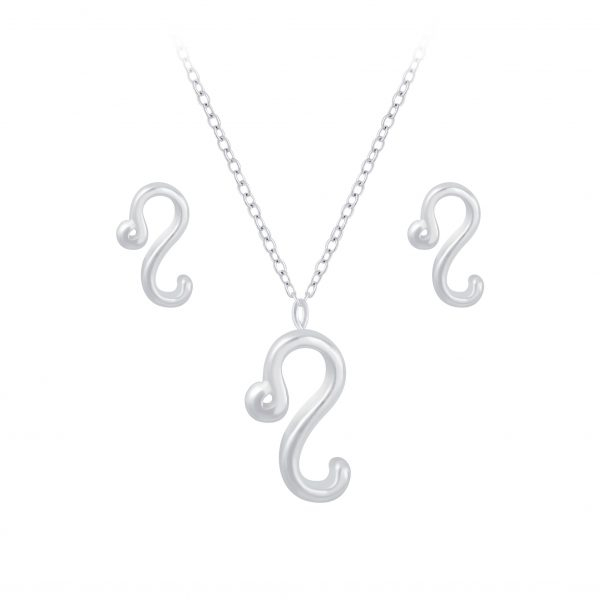 Silver Leo Zodiac Sign Necklace and Stud Earrings Set