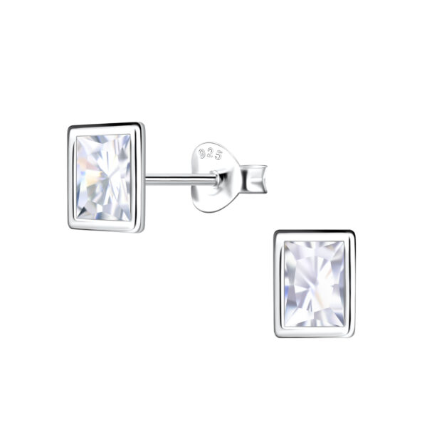 4x6mm Baguette Cubic Zirconia Silver Stud Earrings