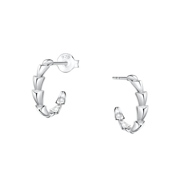Silver Patterned Half Hoop Stud Earrings