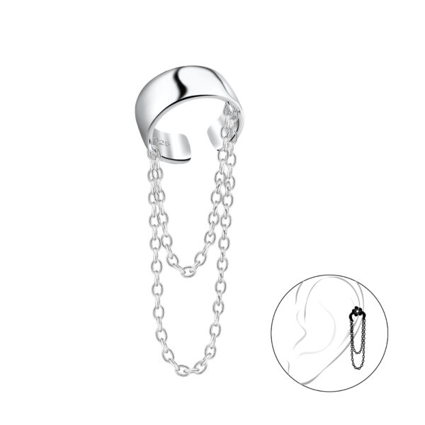 4mm Silver Band Ear Cuff with Chain