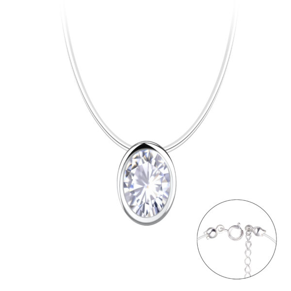6x8mm Oval Cubic Zirconia Silver Invisible Necklace