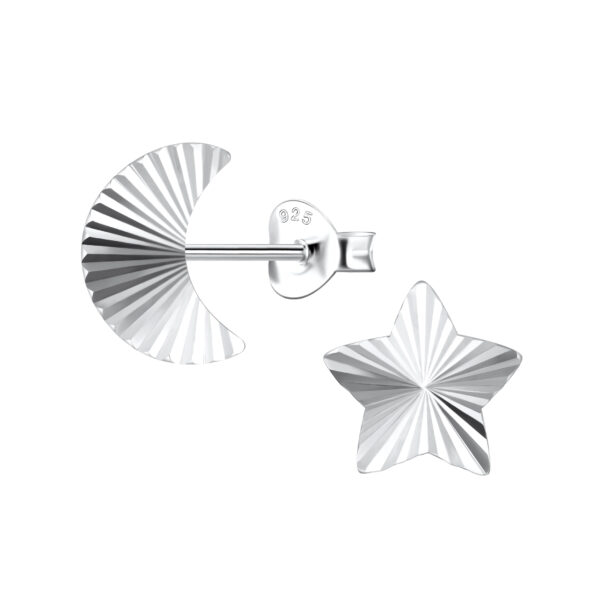 Silver Moon and Star Stud Earrings