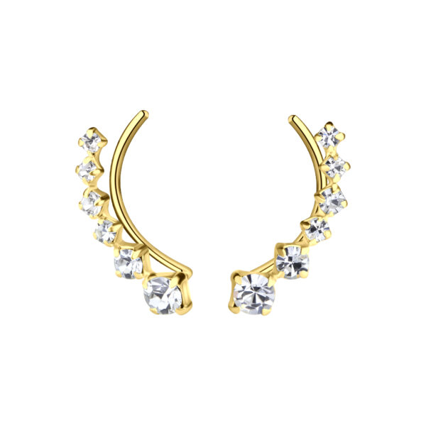 Silver Curved Line Crystal Ear Climbers