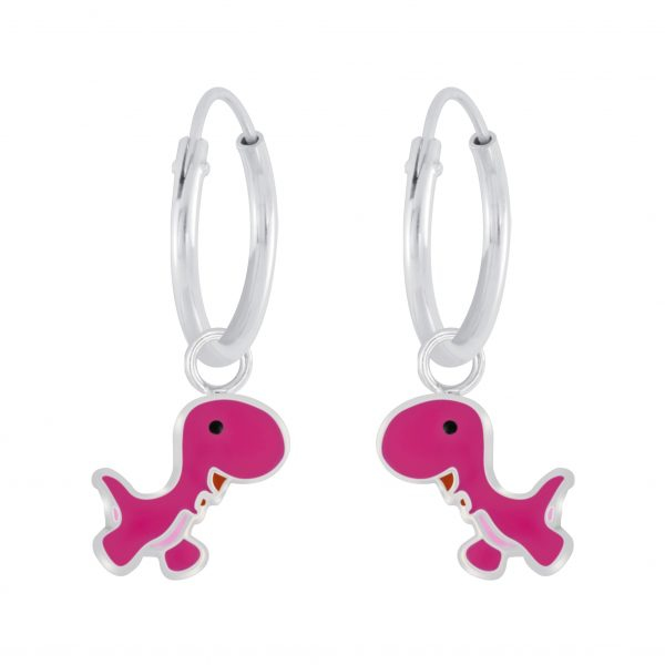 Silver Dinosaur Charm Hoop Earrings