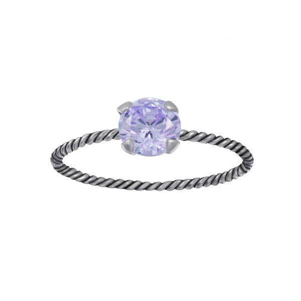 Silver Twisted Band Solitaire Ring