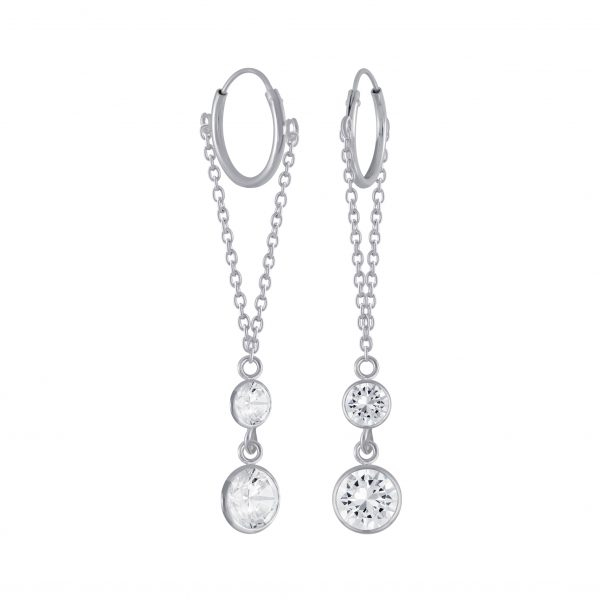 Silver Round Cubic Zirconia Charm Hoop Earrings