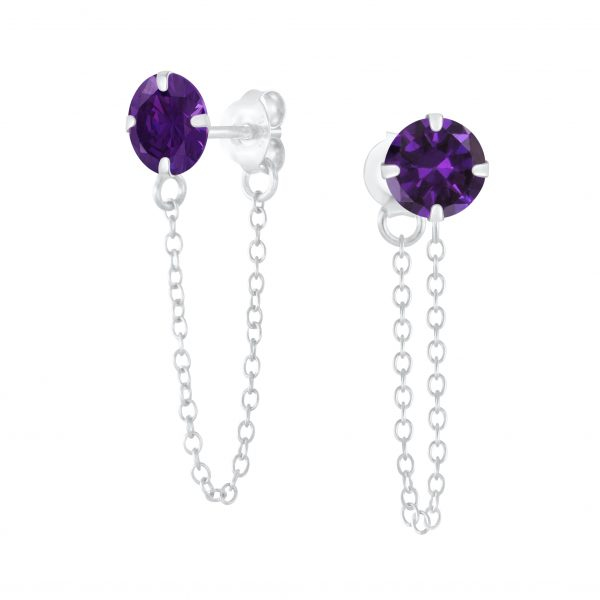 6mm Round Cubic Zirconia Silver Stud Earrings with Chain