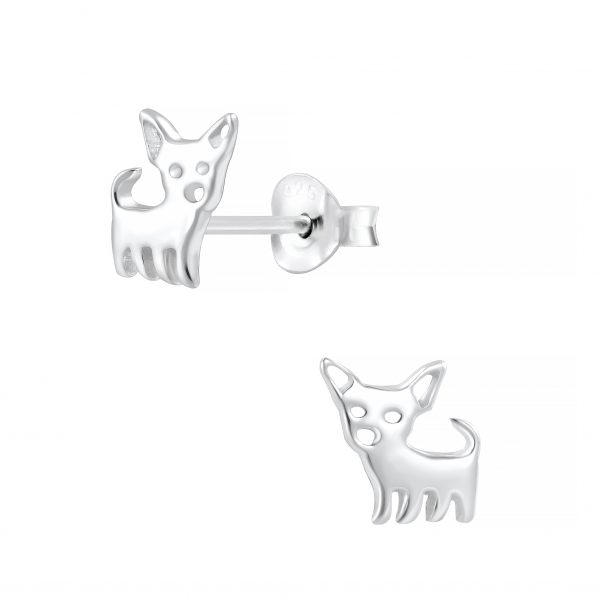 Silver Dog Stud Earrings