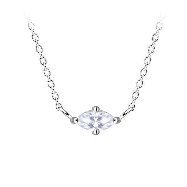 3x6mm Marquise Cubic Zirconia Silver Necklace