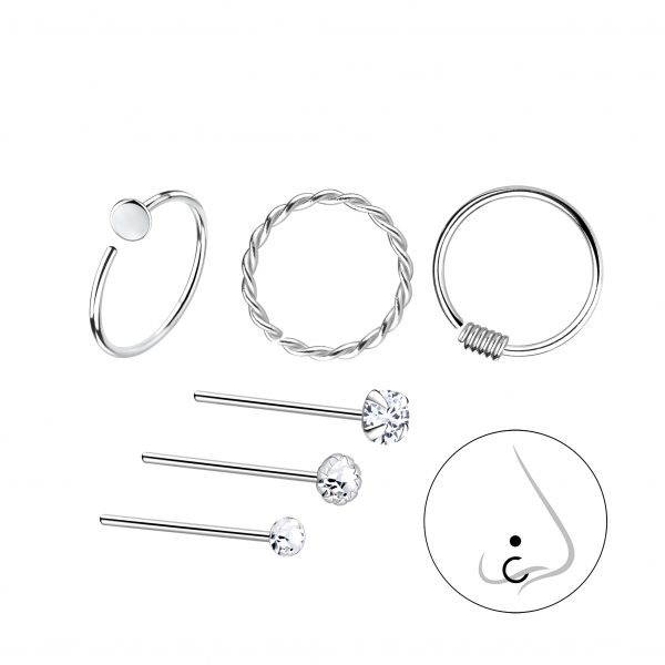 Silver Mixed Nose Jewelry Starter Set - Pack of 6
