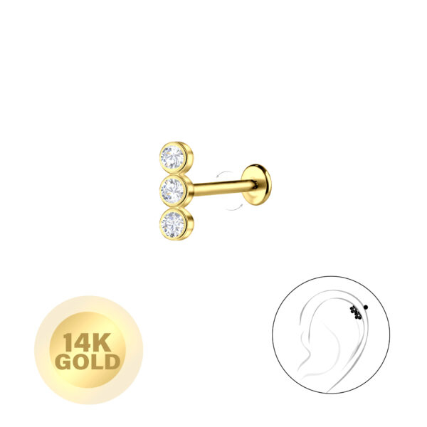 14K Solid Gold - Geometric Labret with 3mm Disc