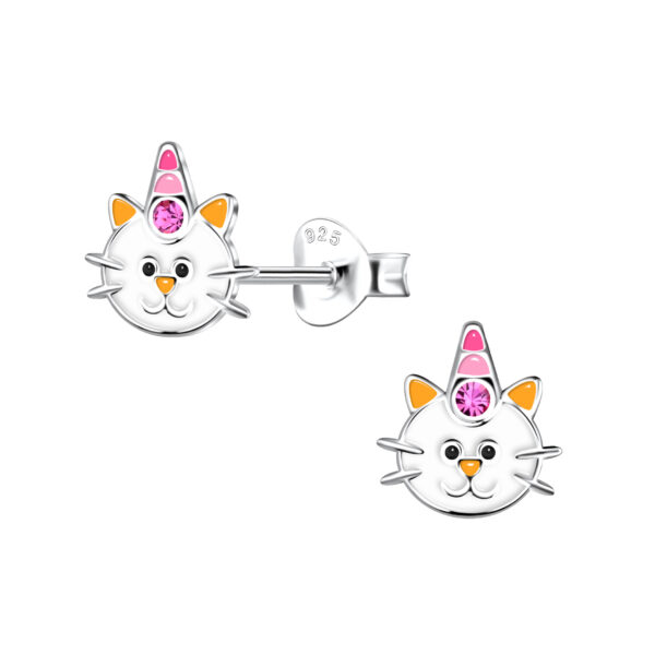 Silver Cat Stud Earrings