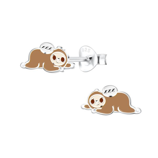 Silver Sloth Stud Earrings