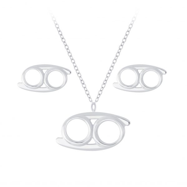 Silver Cancer Zodiac Sign Necklace and Stud Earrings Set